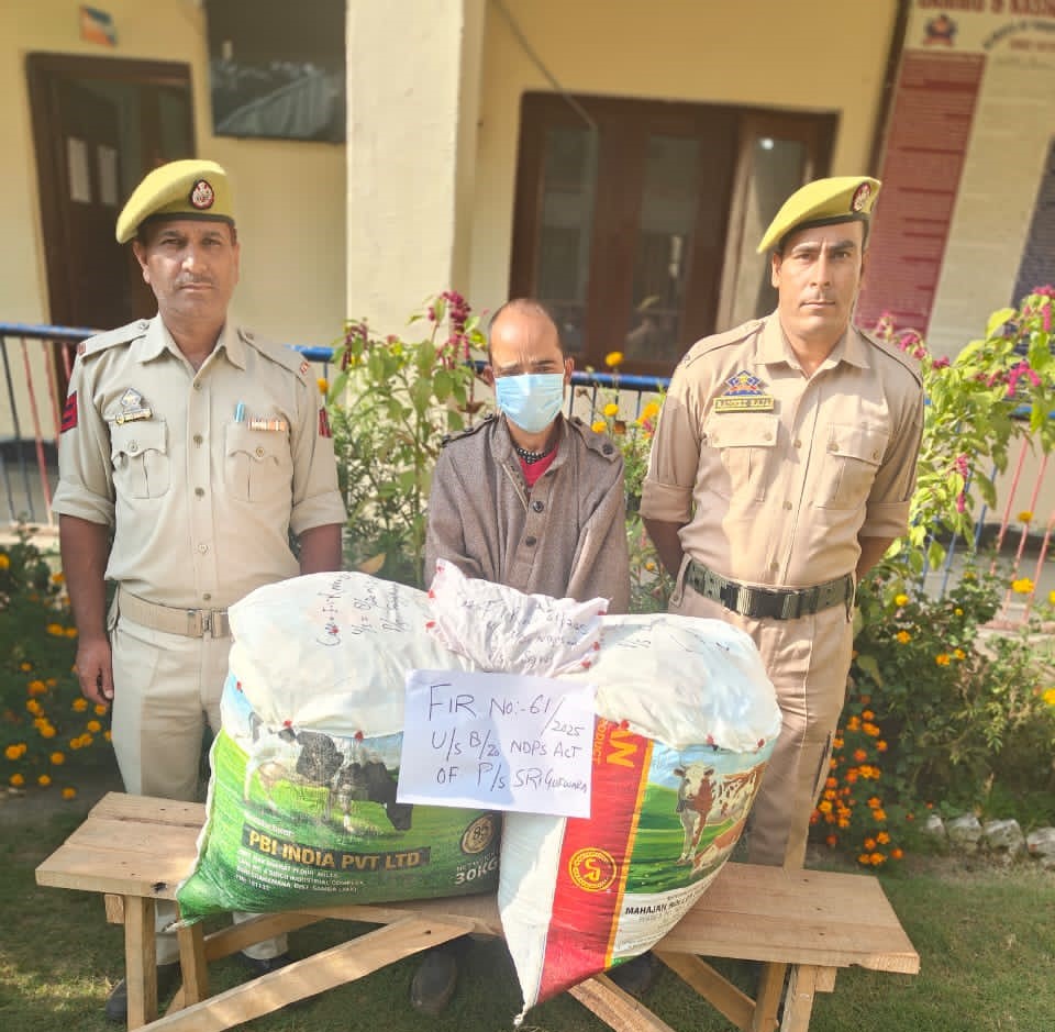 Police Station Srigufwara arrested a drug peddler Gh. Nabi S/o Gh. Hasan Resident of Sallar Sehgund & seized 24.7 kg of Ganja from his house in Sehgund Saller , Case registered under NDPS Act. Anantnag Police remains committed to a drug-free society.