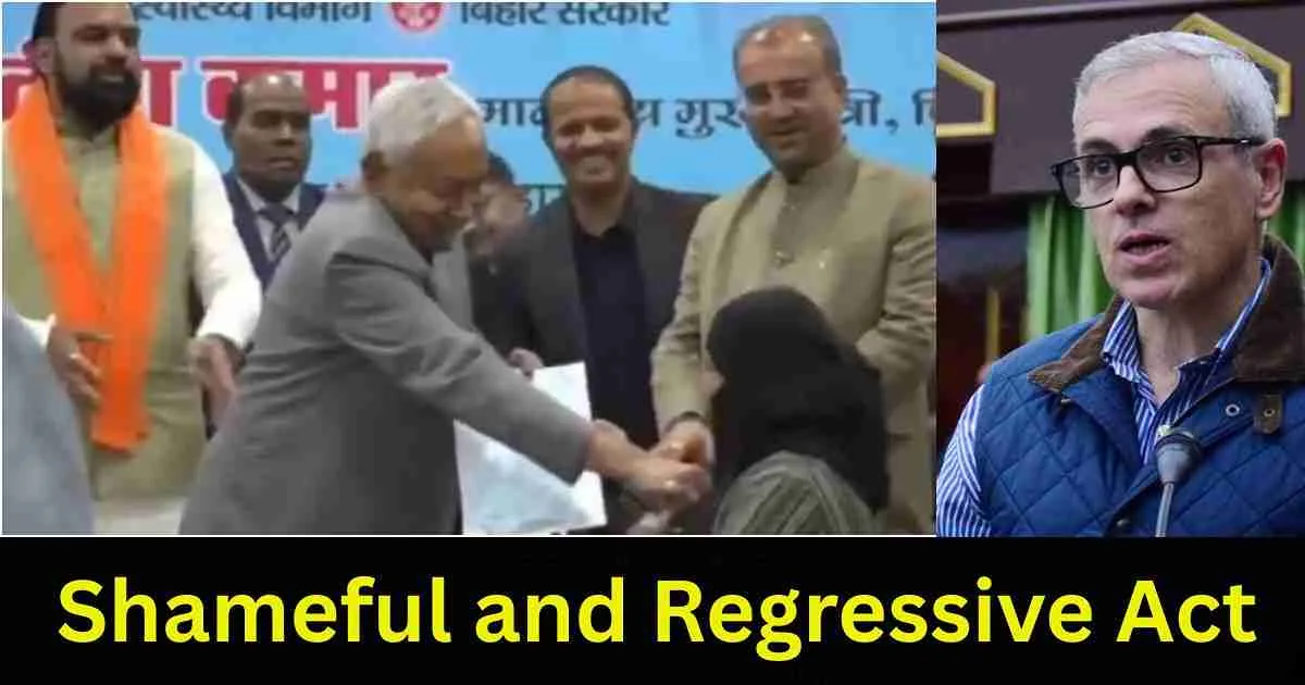 Jammu and Kashmir Chief Minister Omar Abdullah on Wednesday slammed Bihar Chief Minister Nitish Kumar for touching a Muslim woman’s hijab, calling it “unacceptable” and “a reflection of a regressive mindset.”